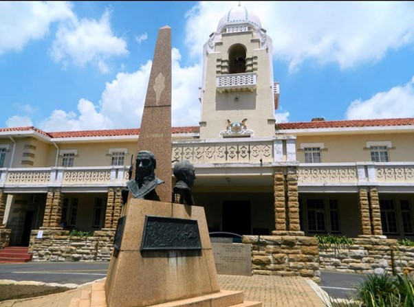 Oorkant die Klipkerk is die Stadsaal, ń pragtige sandsteengebou, ontwerp deur Gerhard Moerdijk, gebou in 1939. Die imposante gebou herinner aan die tyd toe Heidelberg die hoofstad was. Buffelkoppe, soortgelyk aan díe by die Voortrekkermonument pryk weerskante van die stadsaal. Die Buffel is een van die Groot Vyf en een van die gevaarlikste diere as hy bedreig word. Die buffelkoppe is simbolies en verdedig Heidelberg teen aanslae van buite.